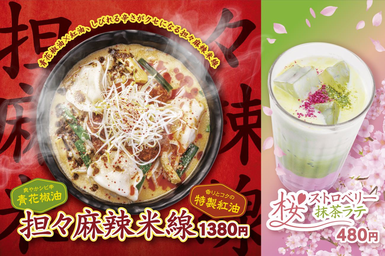 しびれる辛さがやみつきな『担々麻辣米線』発売!期間限定『桜ストロベリー抹茶ラテ』も同時販売