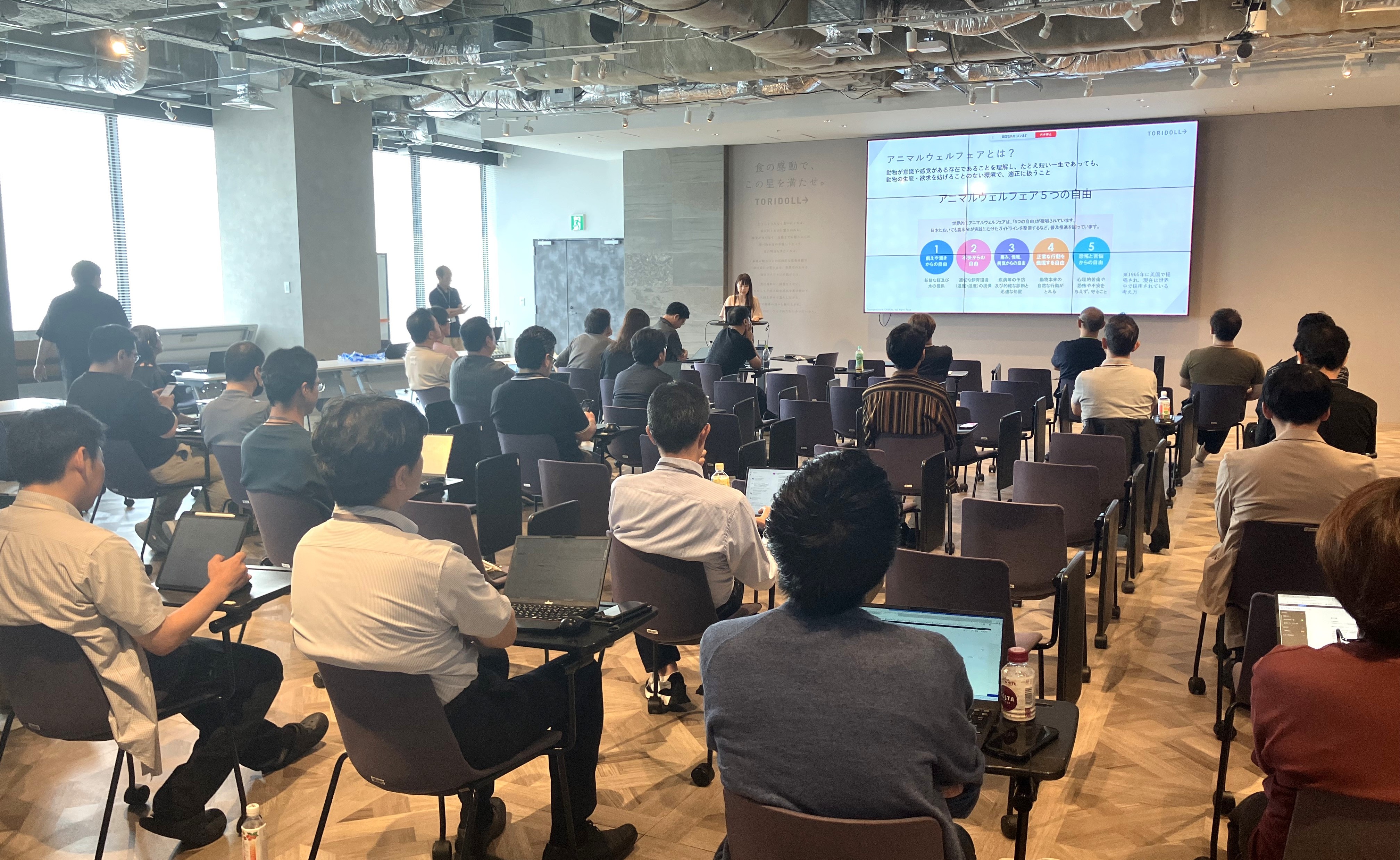 また社内教育として、2024年度は海外事業部の社員を中心に改めてアニマルウェルフェアの理解促進を実施。2025年度は代表取締役社長を委員長とし、取締役、執行役員、ホールディングスの部門長、国内子会社社長、海外子会社主幹部門長を委員とするサステナビリティ推進委員会で理解促進の勉強会を行いました。